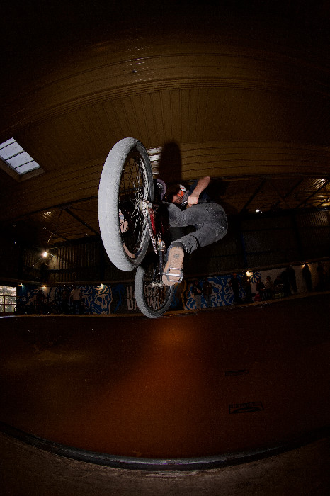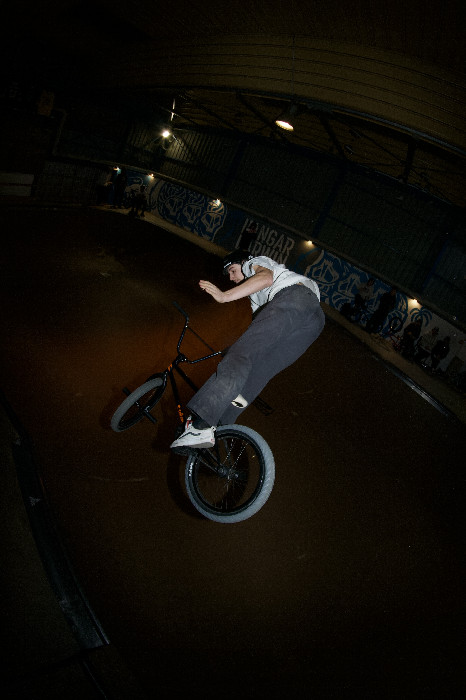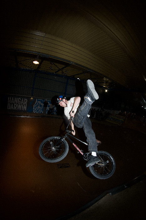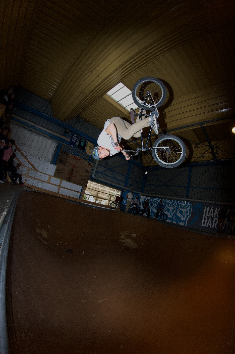 contour du bowl commence à se remplir et à réchauffer le hangar et on voit bien que le BMX a encore de beaux jours devant lui. Dédicace à Kévin Mignon qui se bouge pour faire progresser les jeunes au Skatepark de Pessac et les faire participer aux évents. Venus de Toulouse, Aurillac, Tarbes ou Albi, les amateurs et les pro commencent à se chauffer sur l’ancien bowl du park des Chartrons, amélioré pour l’occasion avec deux trois wall et